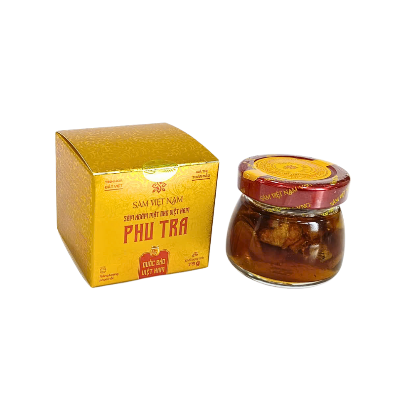 Sâm Việt Nam Phu Tra Ngâm Mật Ong là sản phẩm chăm sóc sức khỏe cao cấp, được tạo nên từ Sâm Việt Nam tuyển chọn kết hợp cùng mật ong thiên nhiên hảo hạng, ủ theo phương pháp truyền thống để giữ trọn hương vị nguyên bản và giá trị dược tính quý giá. Sự hòa quyện giữa vị ngọt thanh của mật ong và vị ấm đặc trưng của sâm mang đến trải nghiệm tinh tế, dễ dùng và hiệu quả bền bỉ.